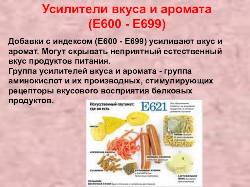 E699) усиливают вкус и аромат. Могут скрывать неприятный естественный вкус продуктов питания.