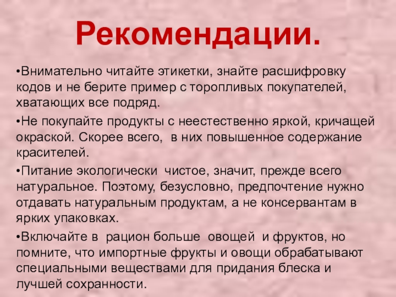 Слайд 39•Внимательно читайте этикетки, знайте расшифровку кодов и не берите пример с