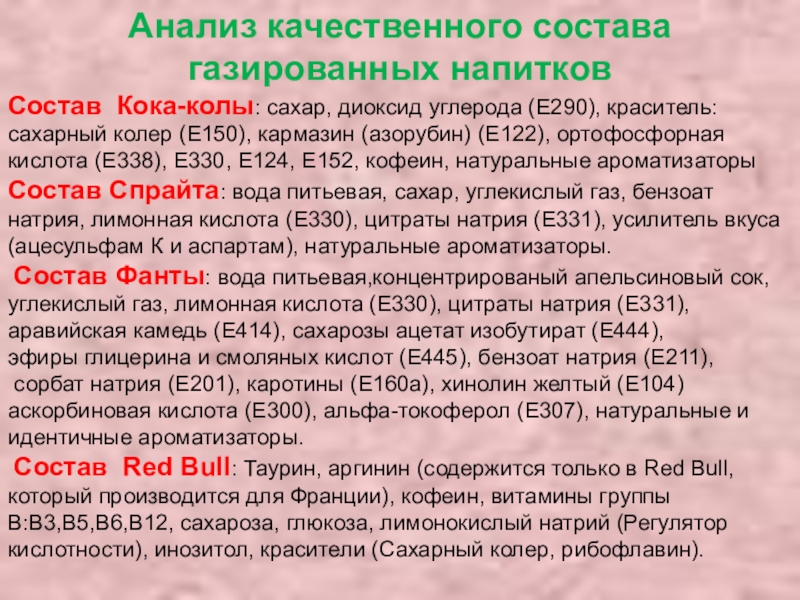 Проанализировать добавки, используемые в пищевой промышленности и в частности при
