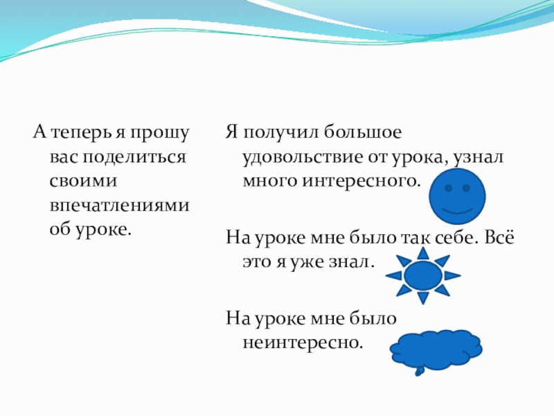 Слайд 31А теперь я прошу вас поделиться своими впечатлениями об уроке.