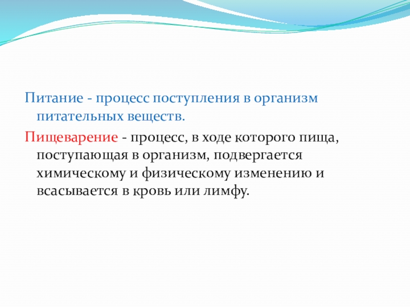 Слайд 10Питание - процесс поступления в организм питательных веществ.