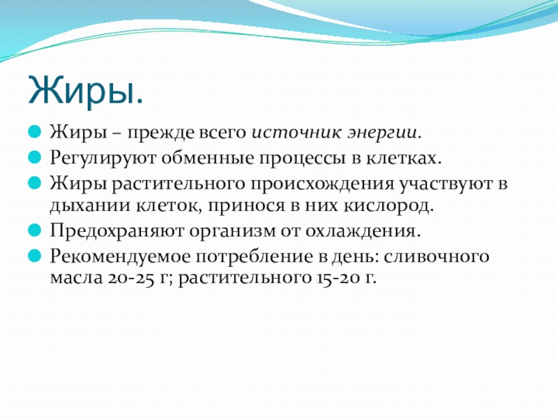 Рекомендуемое потребление в день: сливочного масла 20-25 г; растительного 15-20 г.