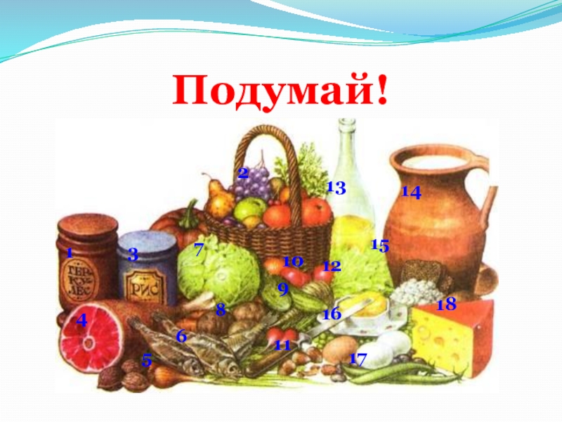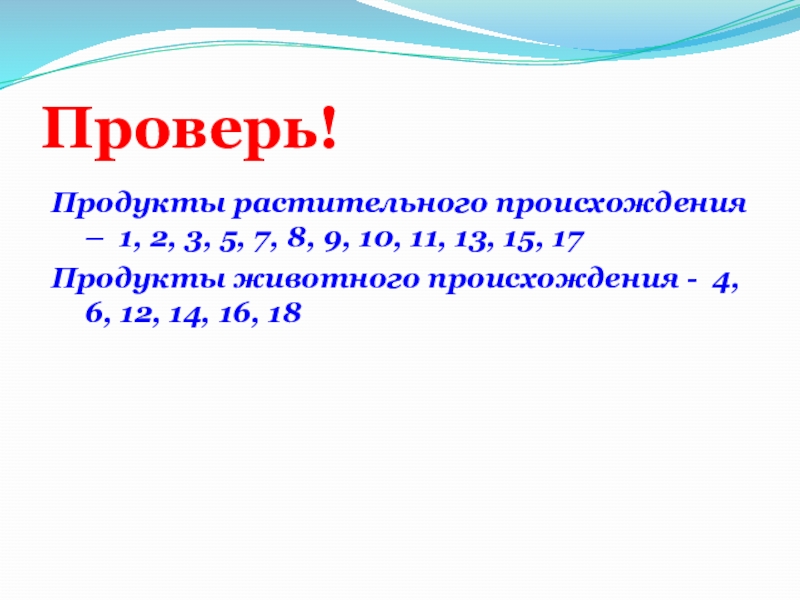 Продукты растительного происхождения – 1, 2, 3, 5, 7, 8, 9,