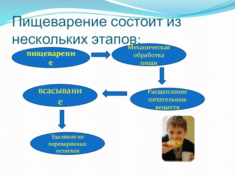 Слайд 12Пищеварение состоит из нескольких этапов: