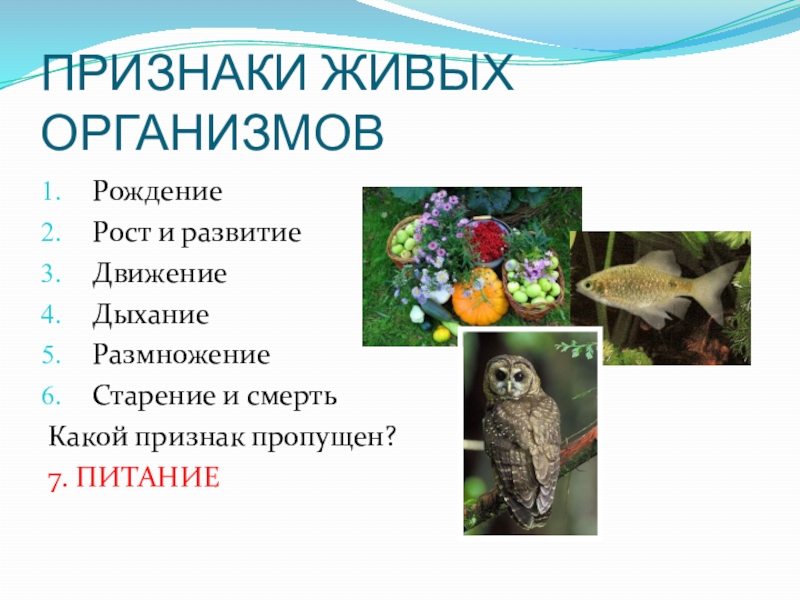 Слайд 2ПРИЗНАКИ ЖИВЫХ ОРГАНИЗМОВ