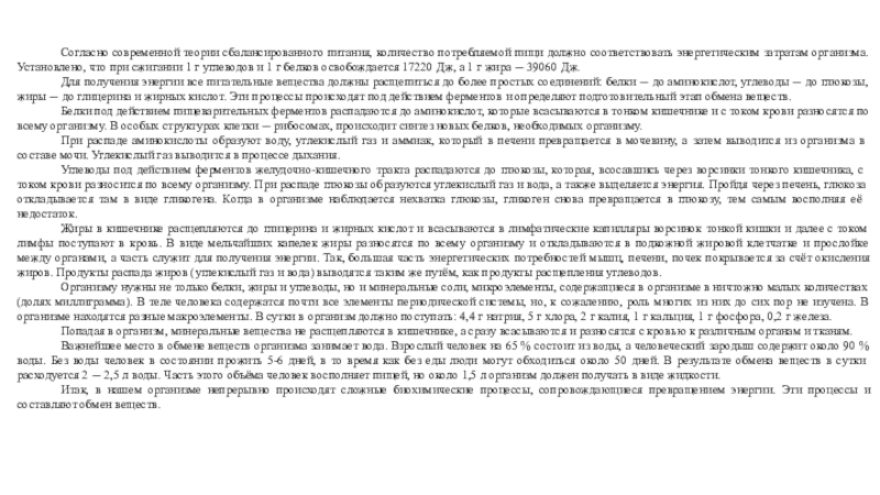 Слайд 5Согласно современной теории сбалансированного питания, количество потребляемой пищи должно соответствовать энергетическим