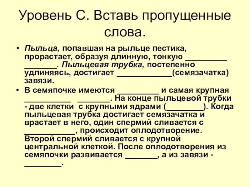 Слайд 8Уровень С. Вставь пропущенные слова.