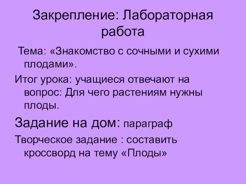 учащиеся отвечают на вопрос: Для чего растениям нужны плоды.