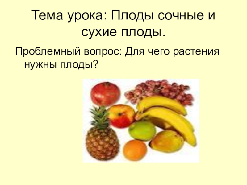 Слайд 1Тема урока: Плоды. Сочные и сухие плоды.