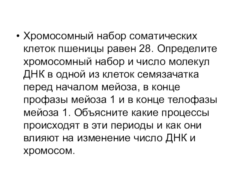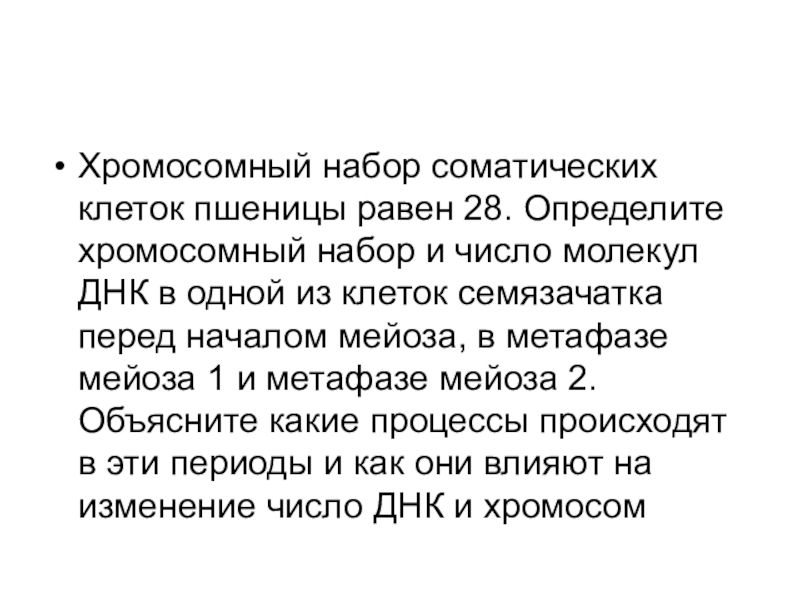 Хромосомный набор соматических клеток пшеницы равен 28. Определите хромосомный набор и