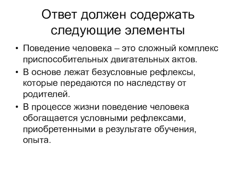 В процессе жизни поведение человека обогащается условными рефлексами, приобретенными в результате обучения, опыта.