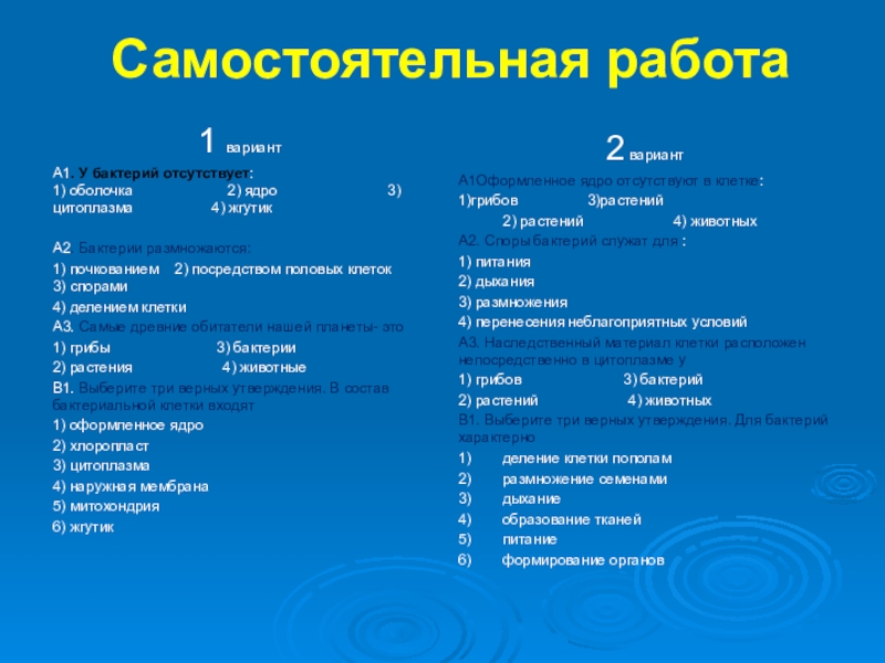 В1. Выберите три верных утверждения. Для бактерий характерно