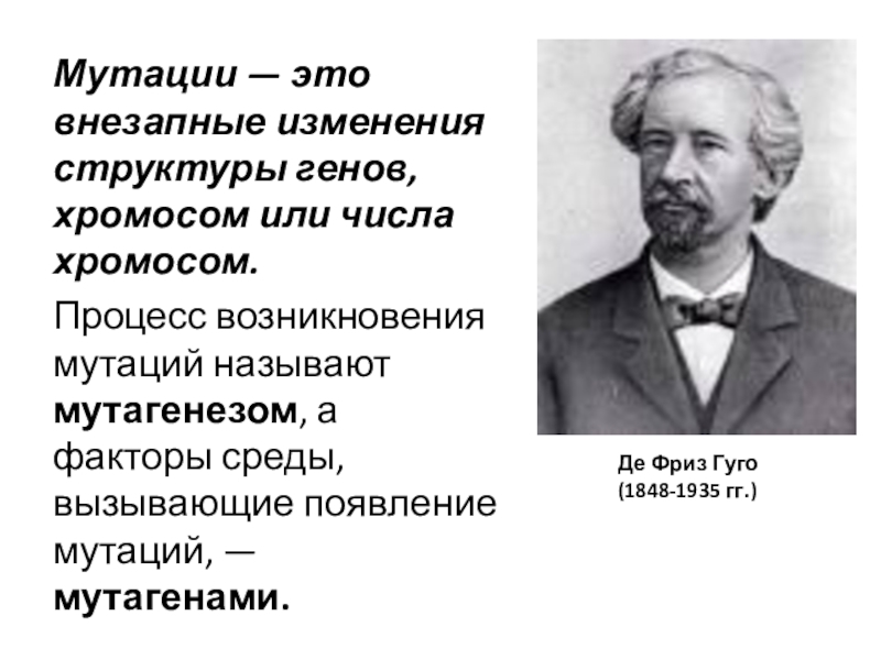 возникновения мутаций называют мутагенезом, а факторы среды, вызывающие появление мутаций, — мутагенами.