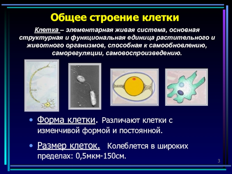 Клетка – элементарная живая система, основная структурная и функциональная единица растительного и животного организмов, способная к самообновлению, саморегуляции, самовоспроизведению.
