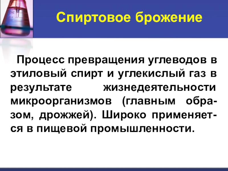 Процесс превращения углеводов в этиловый спирт и углекислый газ