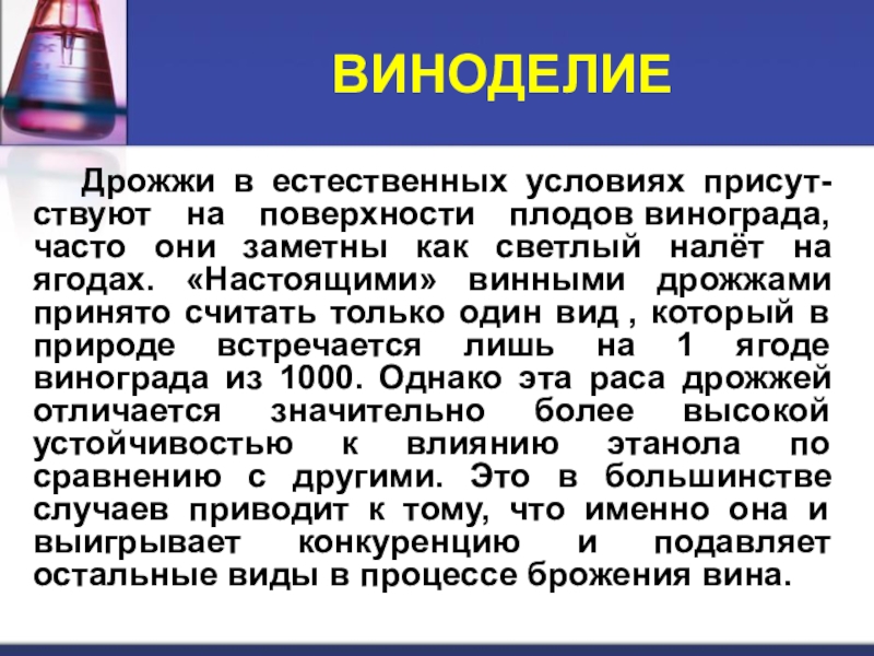 Дрожжи в естественных условиях присут-ствуют на поверхности плодов винограда, часто