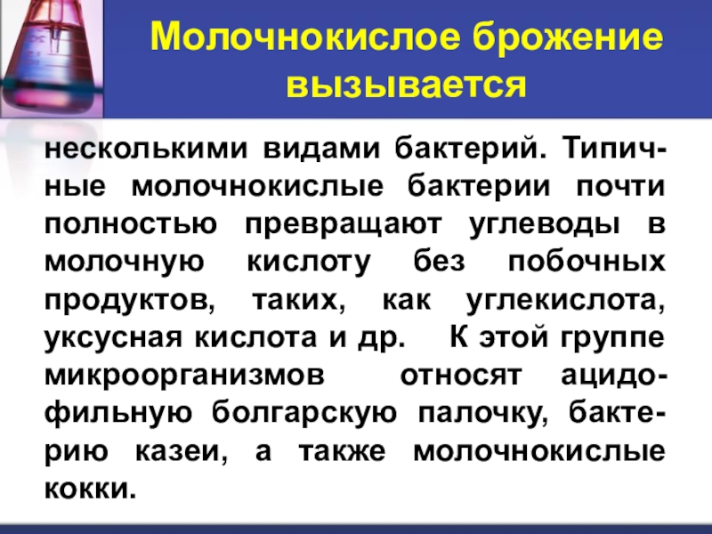 несколькими видами бактерий. Типич-ные молочнокислые бактерии почти полностью превращают