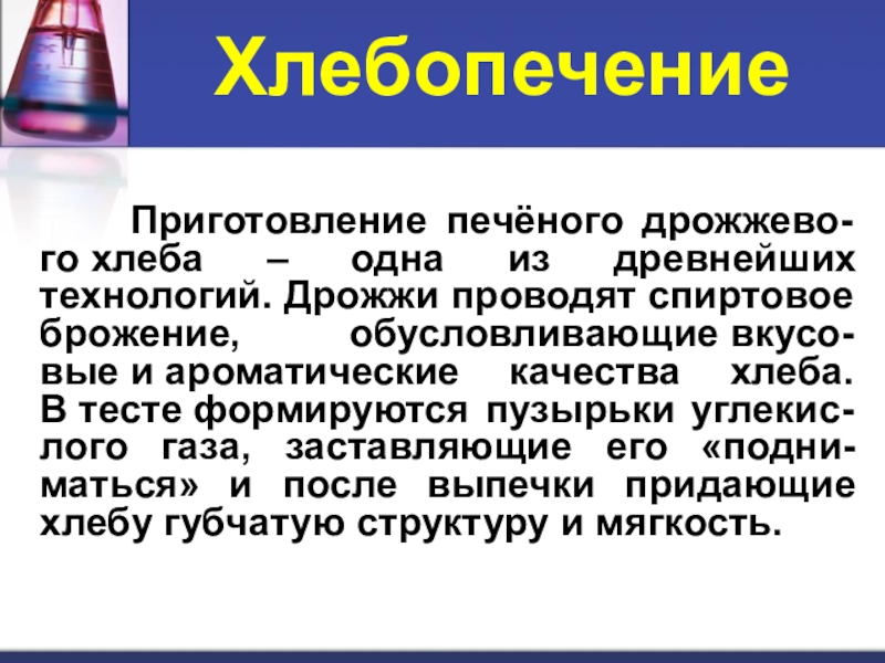 Приготовление печёного дрожжево-го хлеба – одна из древнейших технологий.