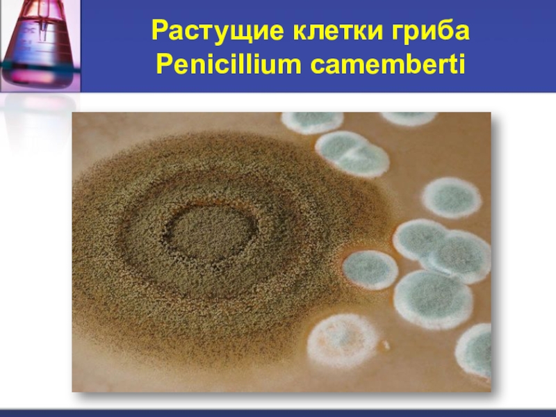 Слайд 6Растущие клетки гриба Penicillium camemberti