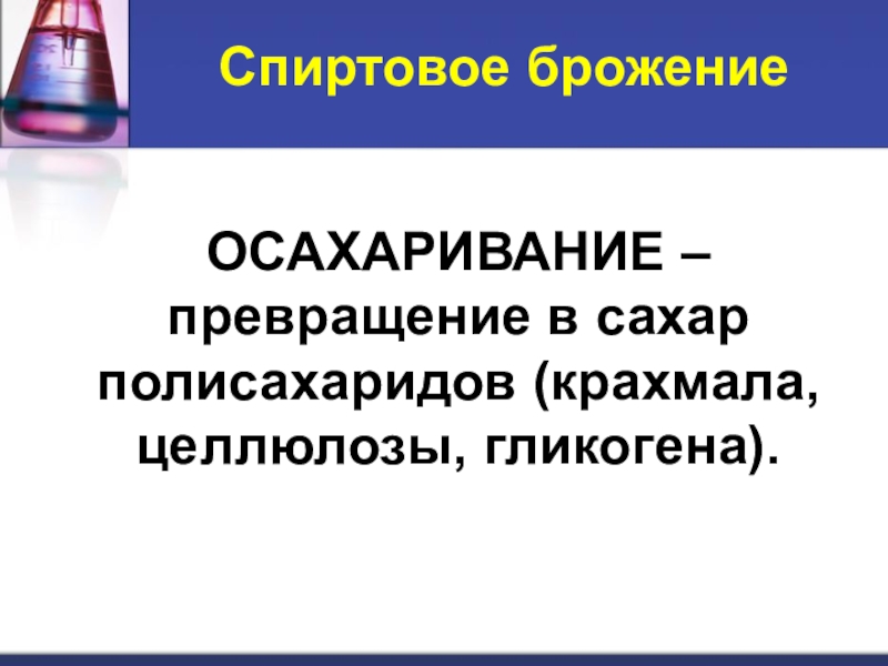 Слайд 12ОСАХАРИВАНИЕ – превращение в сахар полисахаридов (крахмала, целлюлозы, гликогена).