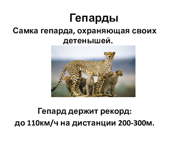 ГепардыСамка гепарда, охраняющая своих детенышей.