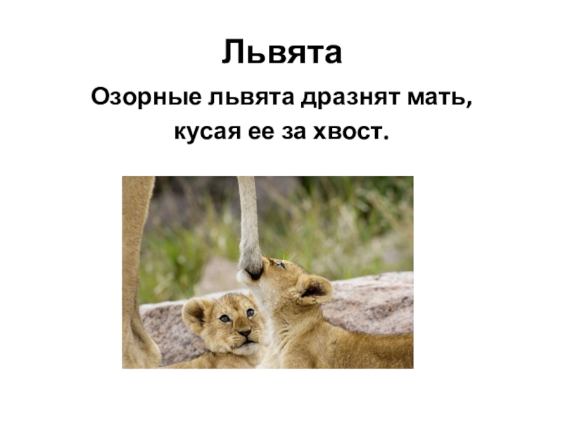 ЛьвятаОзорные львята дразнят мать, кусая ее за хвост.