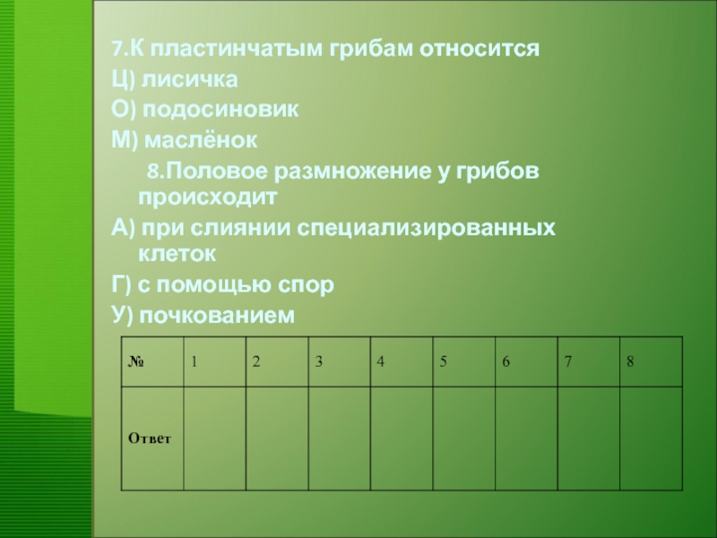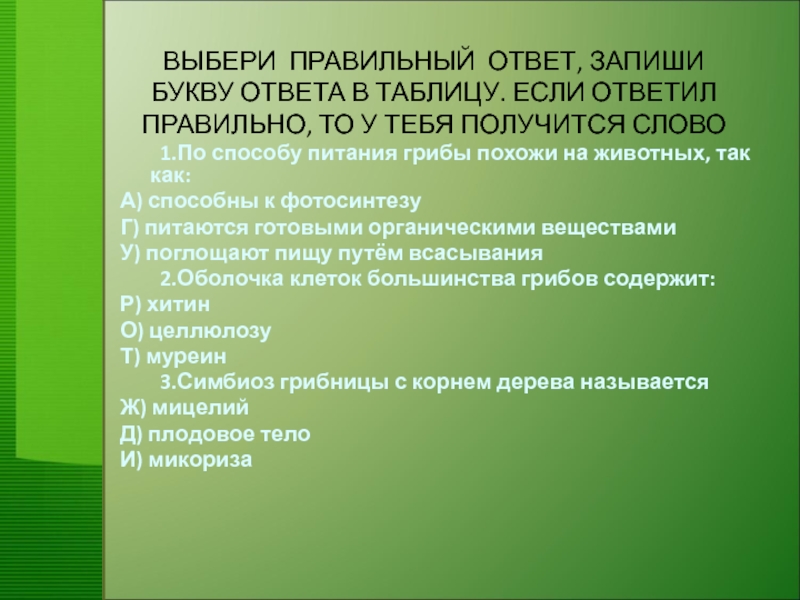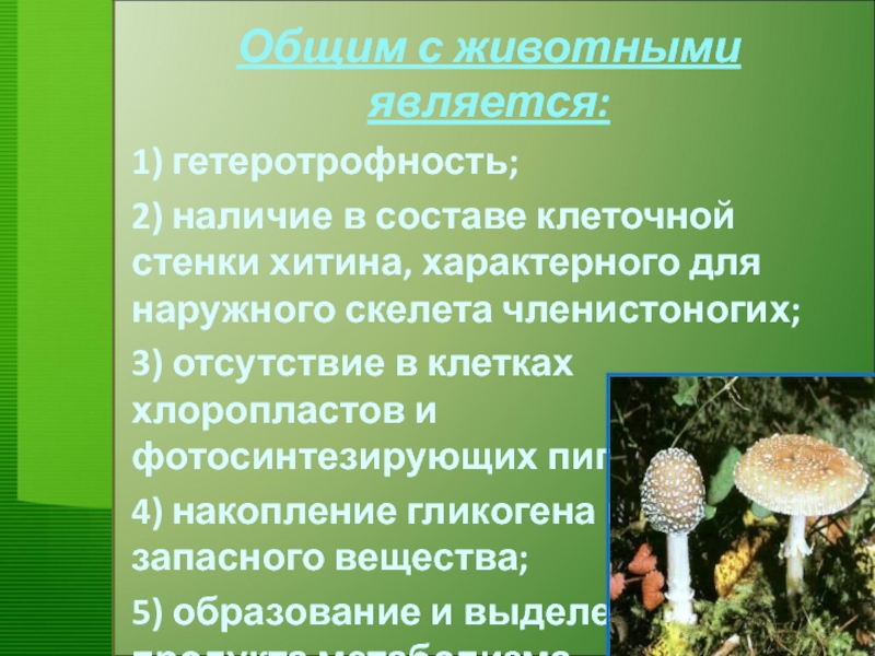 1.По способу питания грибы похожи на животных, так как: