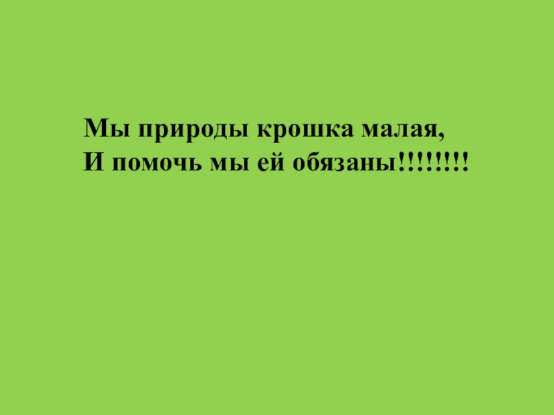 Мы природы крошка малая,И помочь мы ей обязаны!!!!!!!!