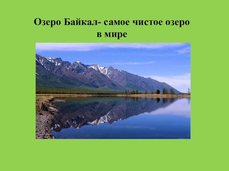 Слайд 9Озеро Байкал- самое чистое озеро в мире