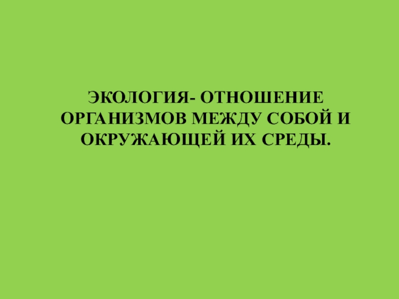 Слайд 2ЭКОЛОГИЯ- ОТНОШЕНИЕ ОРГАНИЗМОВ МЕЖДУ СОБОЙ И ОКРУЖАЮЩЕЙ ИХ СРЕДЫ.