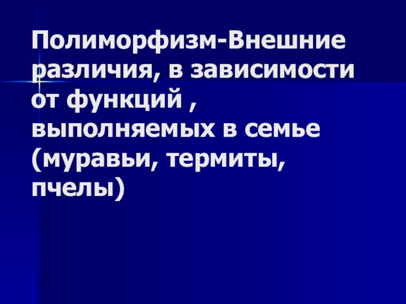 Слайд 28Полиморфизм-Внешние различия, в зависимости от функций , выполняемых в семье (муравьи,