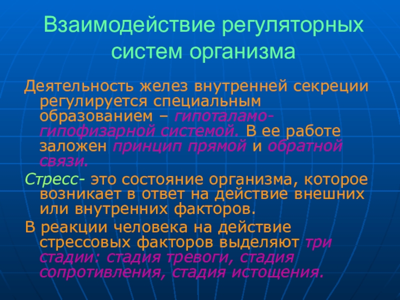 гипоталамо-гипофизарной системой. В ее работе заложен принцип прямой и обратной связи.