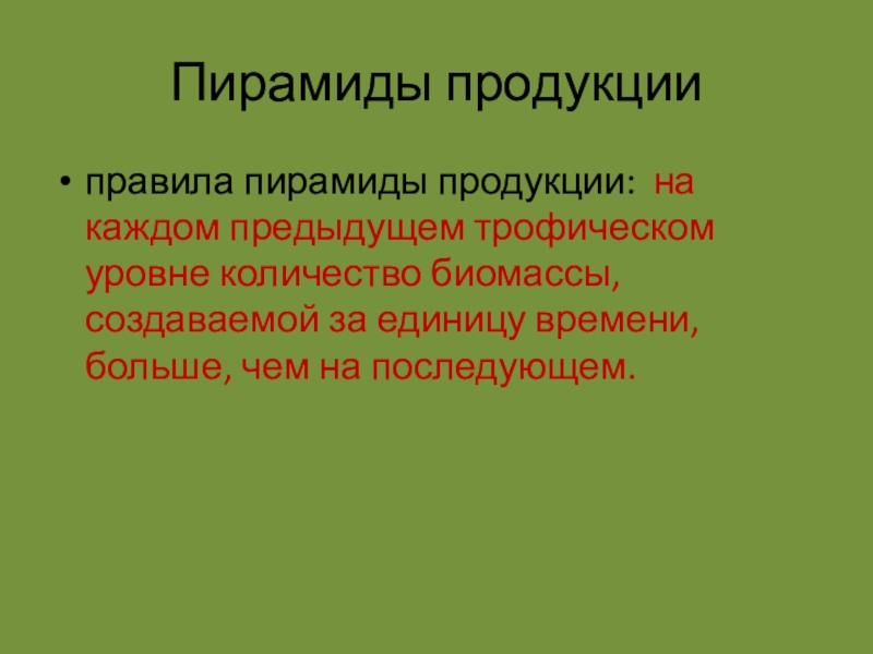 правила пирамиды продукции: на каждом предыдущем трофическом уровне количество биомассы,