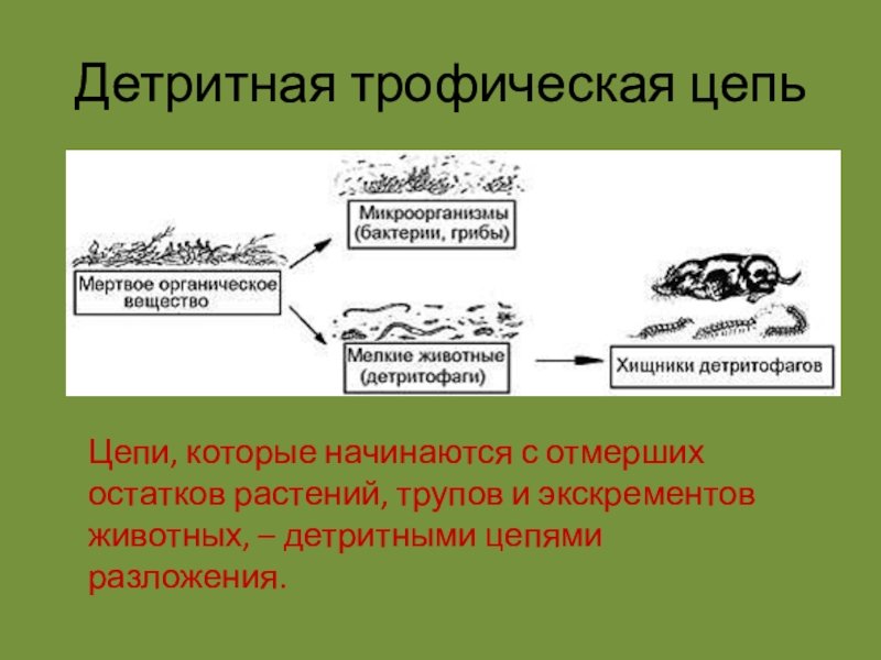 Цепи, которые начинаются с отмерших остатков растений, трупов и