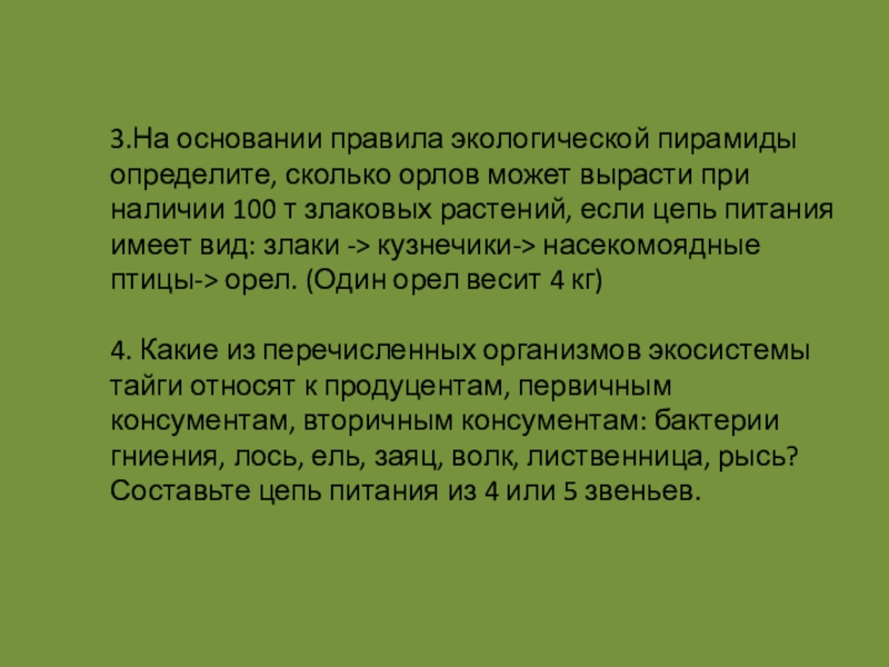 Слайд 313.На основании правила экологической пирамиды определите, сколько орлов может вырасти при