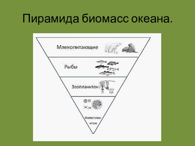 Для океана правило пирамиды биомасс недействительно (пирамида имеет перевернутый вид). На высших трофических уровнях преобладает тенденция к накоплению биомассы, так как длительность жизни крупных хищников велика, скорость оборота их генераций, наоборот, мала и в их телах задерживается значительная часть вещества, поступающего по цепям питания.