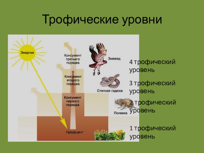 Место каждого звена в цепи питания называют трофическим уровнем.
