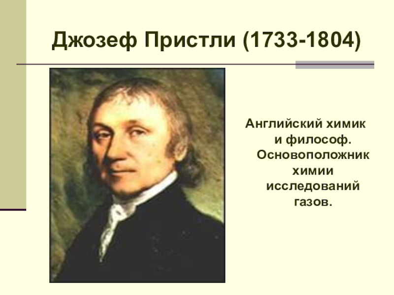 Джозеф Пристли (1733-1804)Английский химик и философ. Основоположник химии исследований газов.