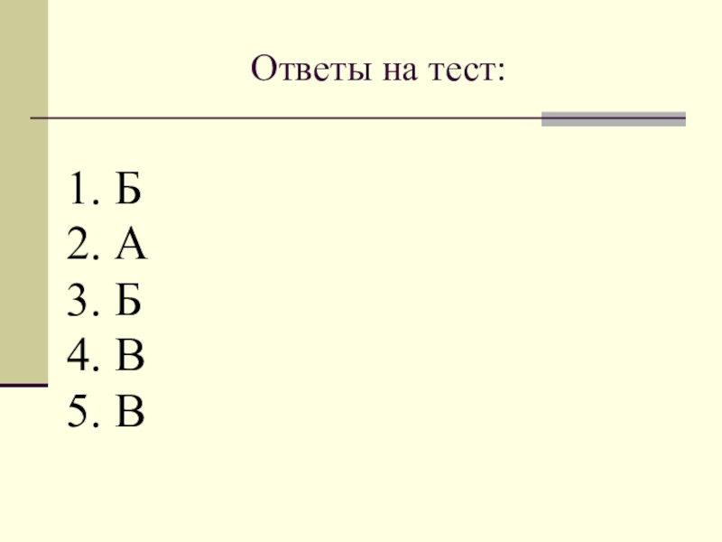 Ответы на тест:1. Б2. А3. Б4. В5. В
