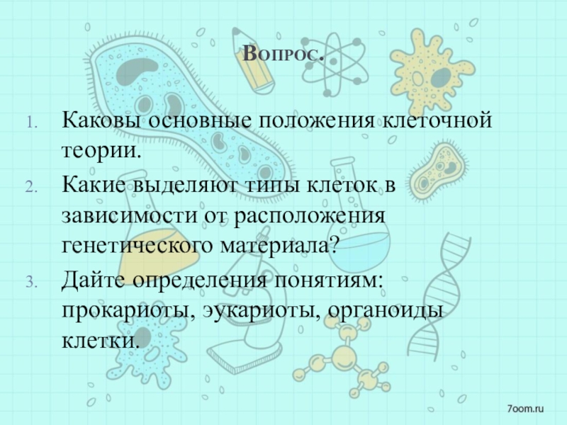1. Сформулировать определение понятия «эукариоты», «прокариоты», «органоиды».
