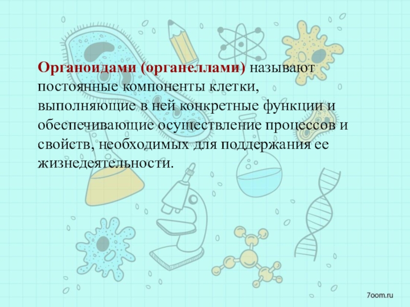 Слайд 9Органоидами (органеллами) называют постоянные компоненты клетки, выполняющие в ней конкретные функции