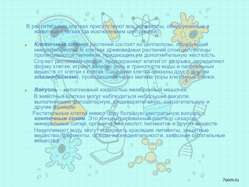 Слайд 22 В растительных клетках присутствуют все органеллы, обнаруженные в животных клетках