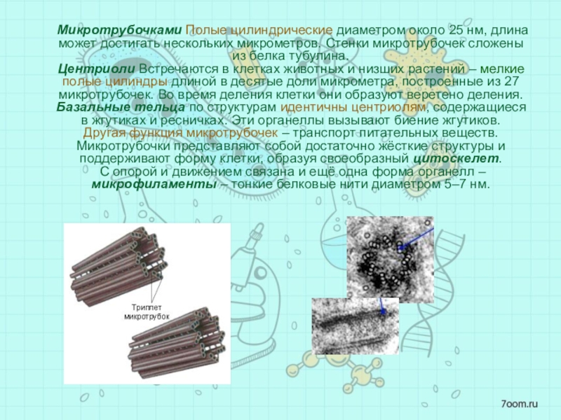 Микротрубочками Полые цилиндрические диаметром около 25 нм, длина может достигать нескольких микрометров.