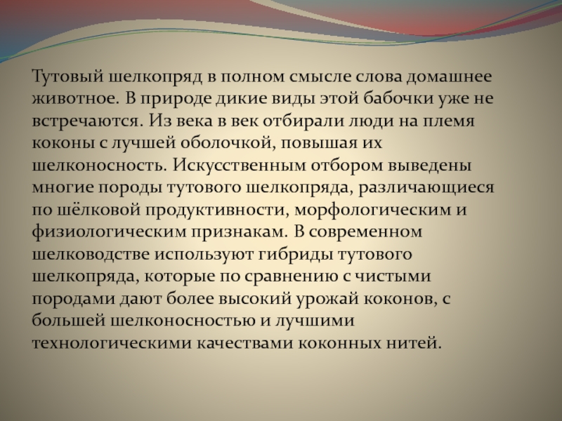 Слайд 4Тутовый шелкопряд в полном смысле слова домашнее животное. В природе дикие