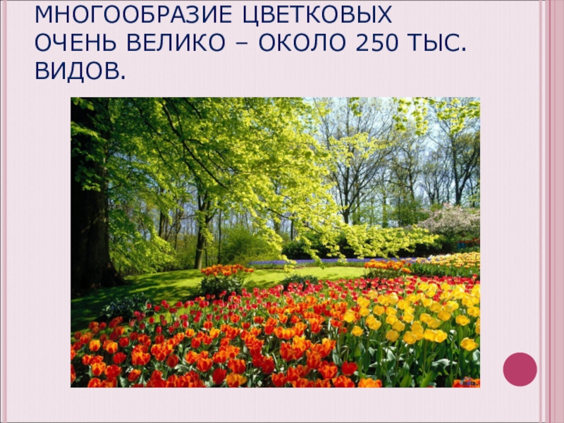 Слайд 3МНОГООБРАЗИЕ ЦВЕТКОВЫХ ОЧЕНЬ ВЕЛИКО – ОКОЛО 250 ТЫС. ВИДОВ.