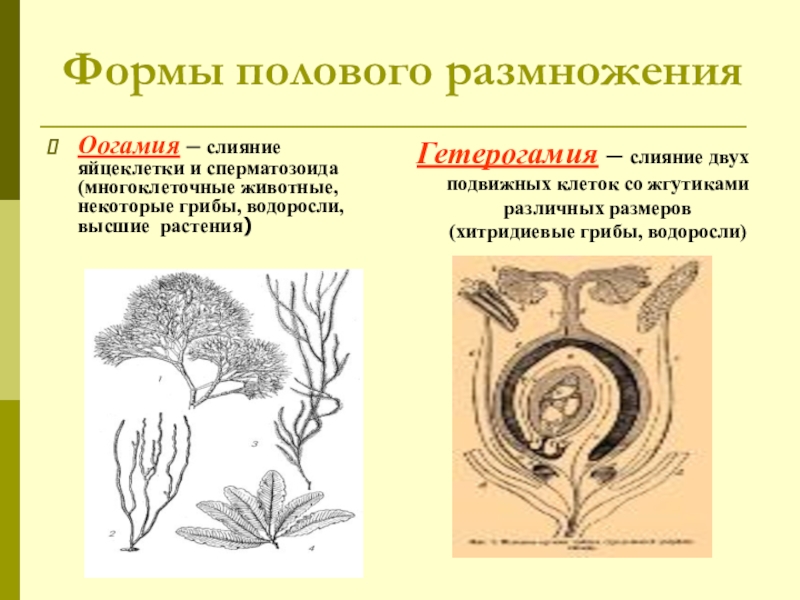 Гетерогамия – слияние двух подвижных клеток со жгутиками различных размеров (хитридиевые грибы, водоросли)