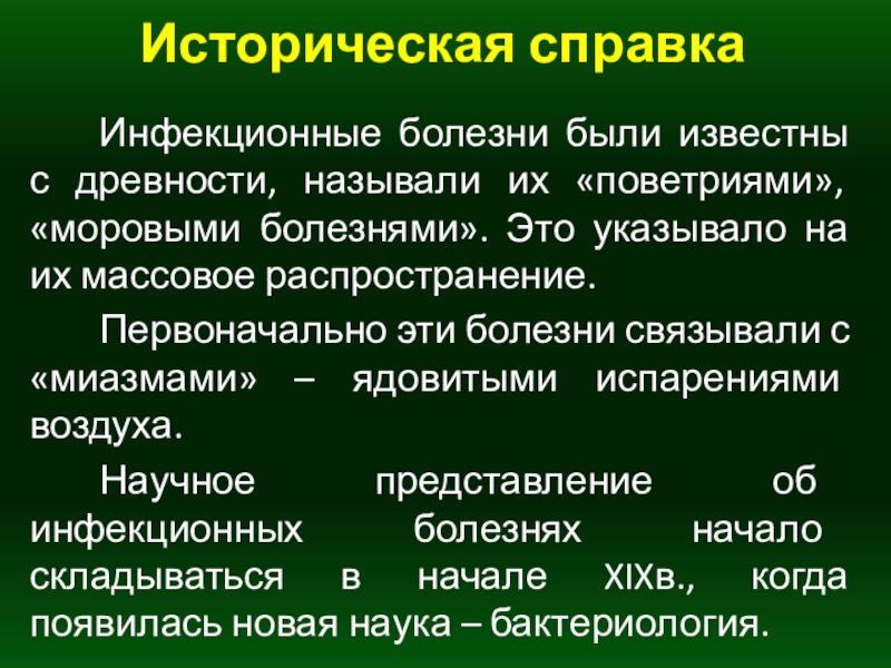 Инфекционные болезни были известны с древности, называли их «поветриями», «моровыми
