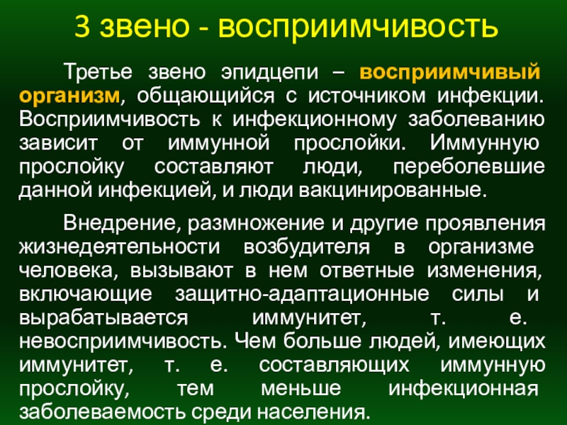 Третье звено эпидцепи – восприимчивый организм, общающийся с