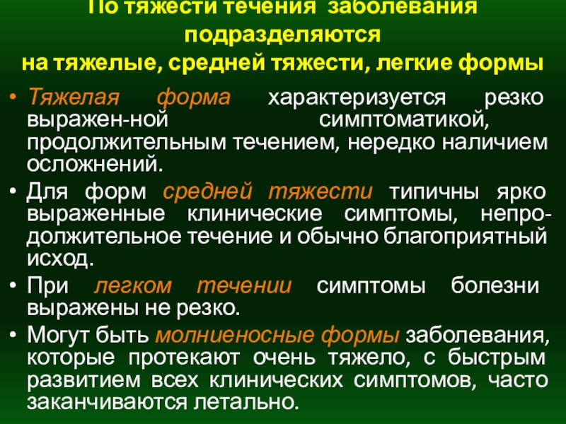 Для форм средней тяжести типичны ярко выраженные клинические симптомы, непро-должительное течение и обычно благоприятный исход.