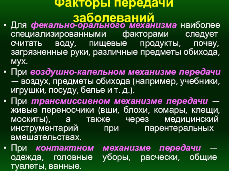 Для фекально-орального механизма наиболее специализированными факторами следует считать воду,